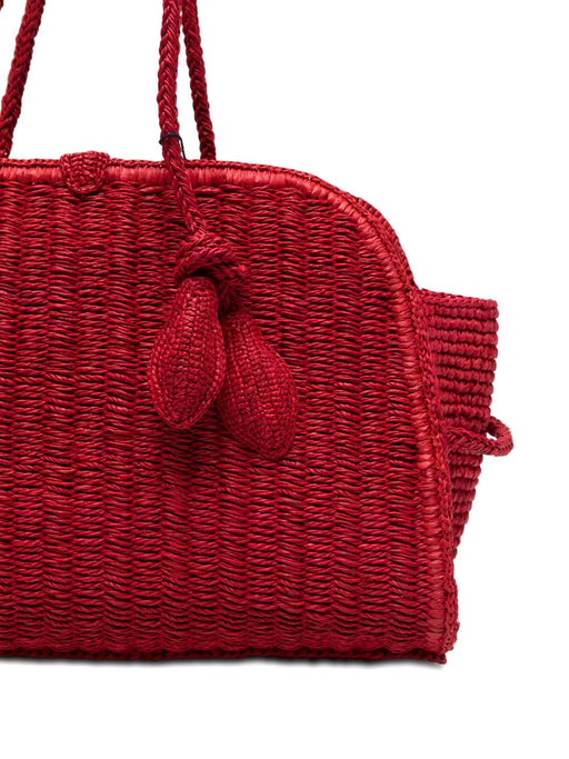 JACQUEMUSred top handles Le Turismo rafia handbag.
