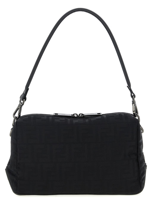 Fendi'fendi lui medium squared ff' shoulder bag in padded ff nylon with tone-on-tone smooth calf leather base and handle, Metallic ff logo with satin ru...