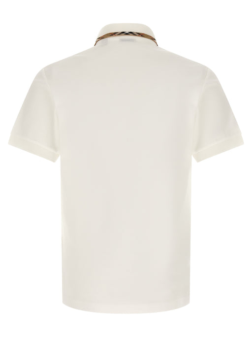 Burberry'eddie' cotton piqué polo shirt with tone-on-tone 'equestrian knight design' embroidered logo on the front, Collar with burberry check intarsia and...