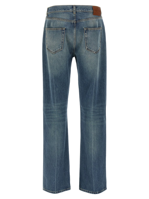 Alexander McQueenStonewashed cotton denim jeans with metal 'skull' tag on the front, Straight leg, Button closure, Five pockets, And leather logo label on the back....