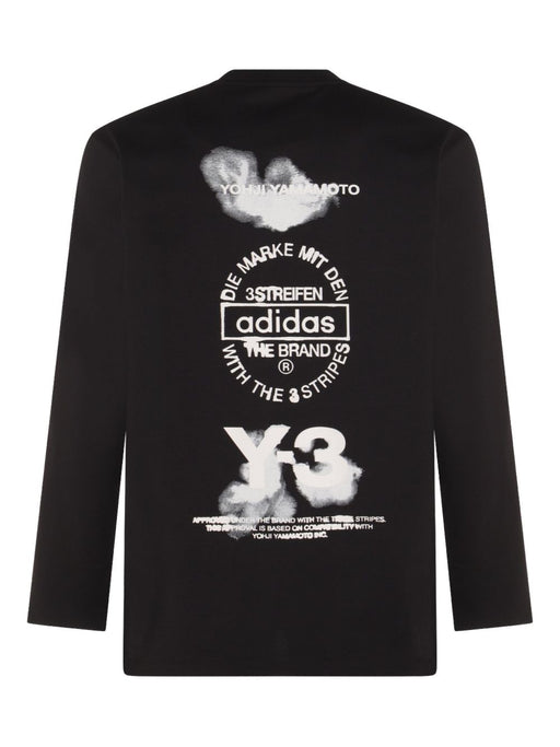 Y-3¡Compre la camiseta de algodón con el logotipo Y-3 en OFERTA HOY! negro manga larga cuello redondo algodón estampado de logotipo Camiseta d...