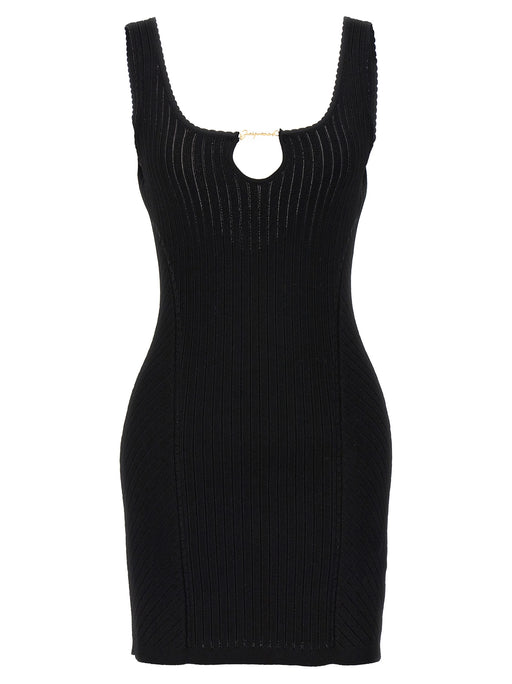 JacquemusVestido "la mini robe sierra" en mezcla de viscosa acanalada con detalle de abertura en la parte delantera y charm de logotipo de metal dorado. Sin...